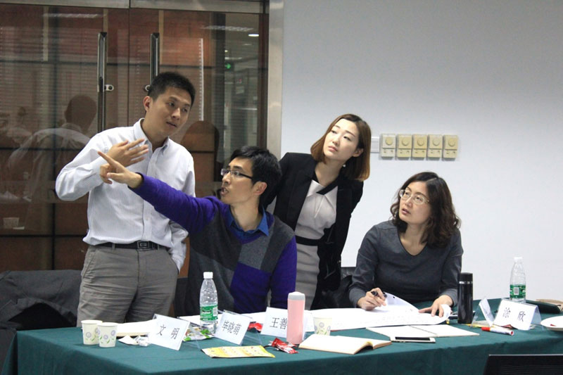 今天的课堂仍然是启发和互动的课堂,密布着案例分析与分组讨论。李富山老师分别针对每一大类协同管理,首先介绍该类协同管理的目标、管理的原则以及管理的技巧;并且,针对每个大的类别,都要求同学们对问题或案例进行分组讨论,形成书面方案,分别上台汇报并接受提问。